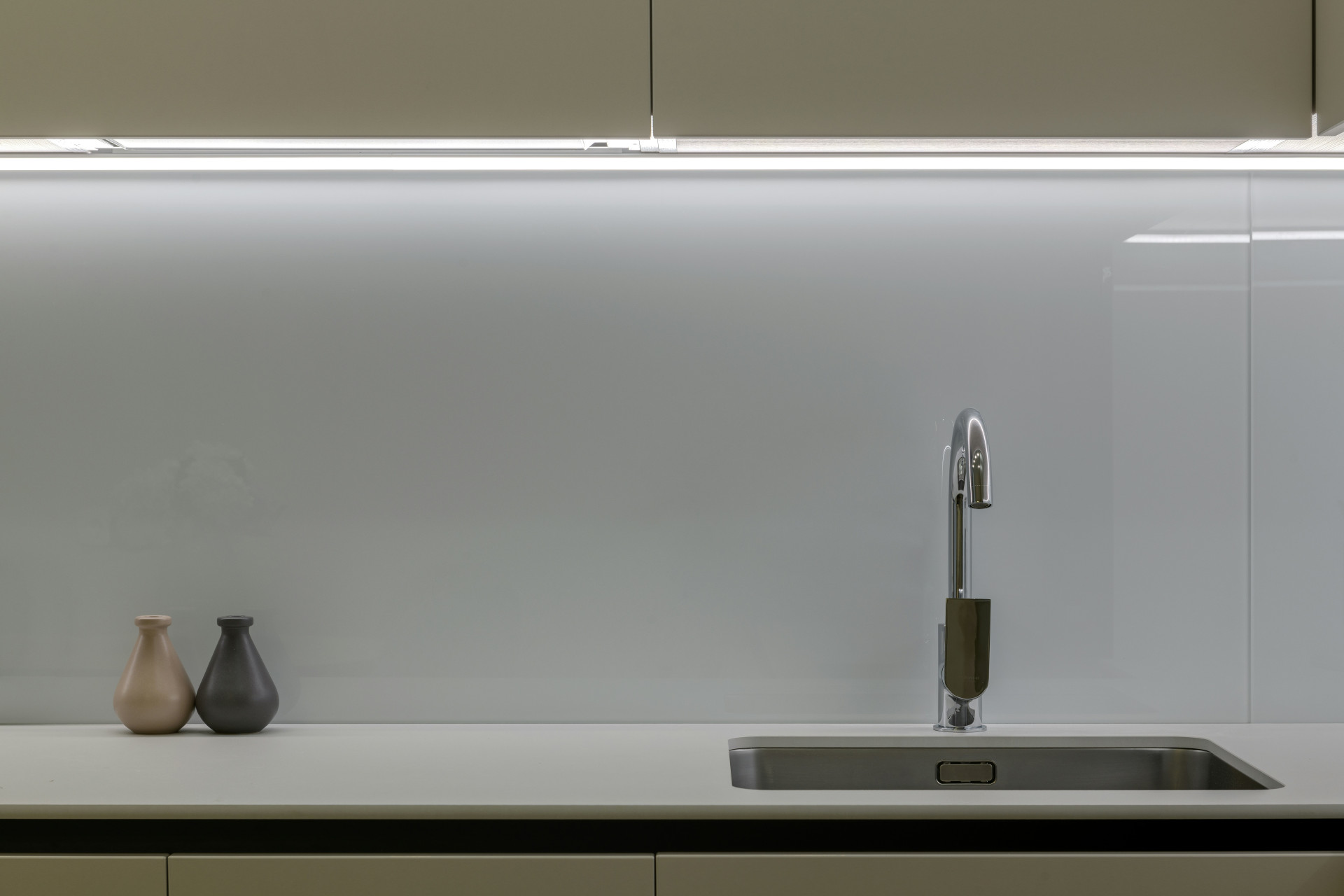 En glasplade bag vasken er en elegant og minimalistisk løsning, der vinder mere og mere indpas i moderne køkkener. Pladen dækker hele væggen i ét stykke, hvilket betyder, at der ikke er fuger, hvor snavs kan samle sig.